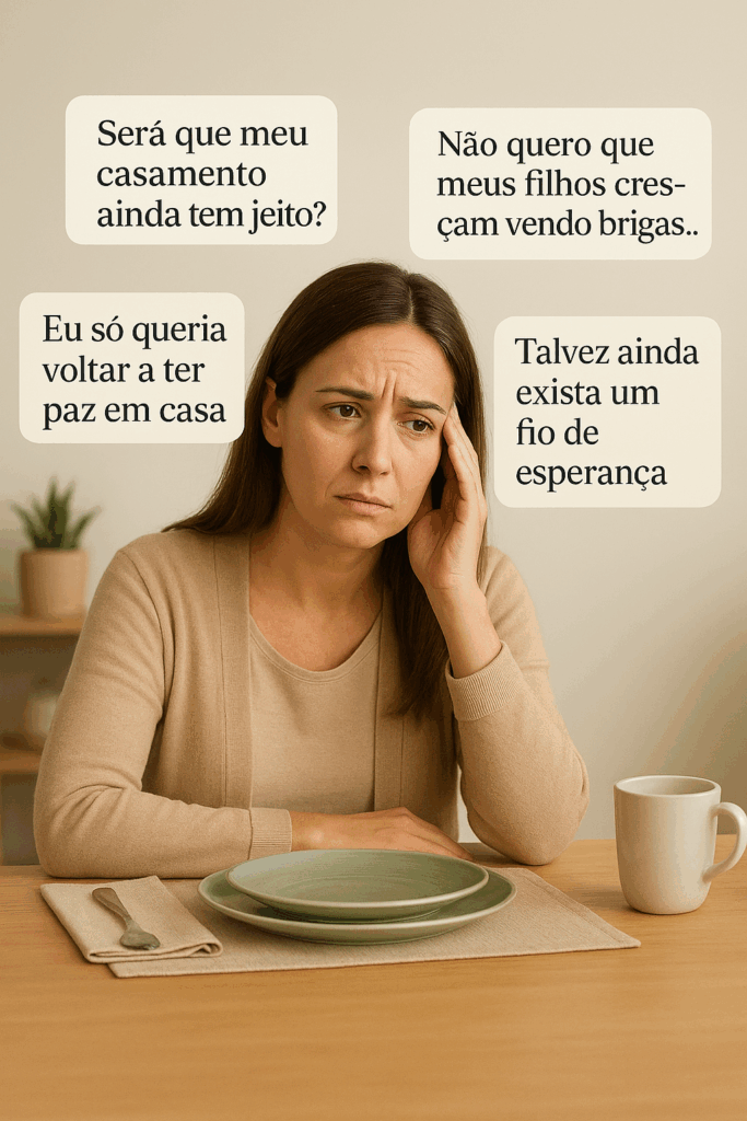 Após enfrentar uma crise profunda em seu casamento e perceber os reflexos dessa dor nos filhos, ela decidiu transformar sua história em aprendizado.